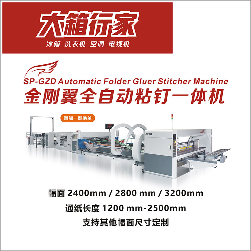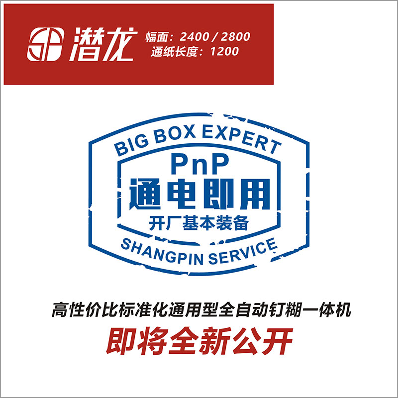 上品机械的工厂有1+1双片拼接全自动钉箱机、精准龙下折式全自动钉糊一体机(联动线/单机)、潜龙全自动钉糊一体机三台设备同时开机做单演示。